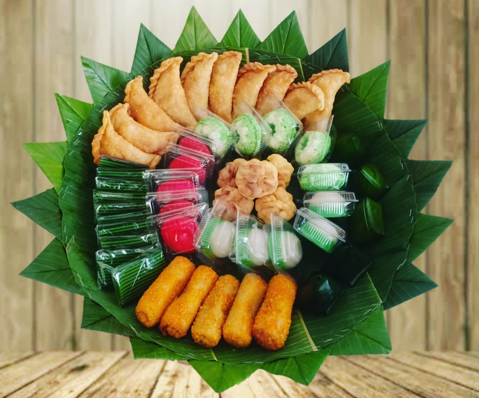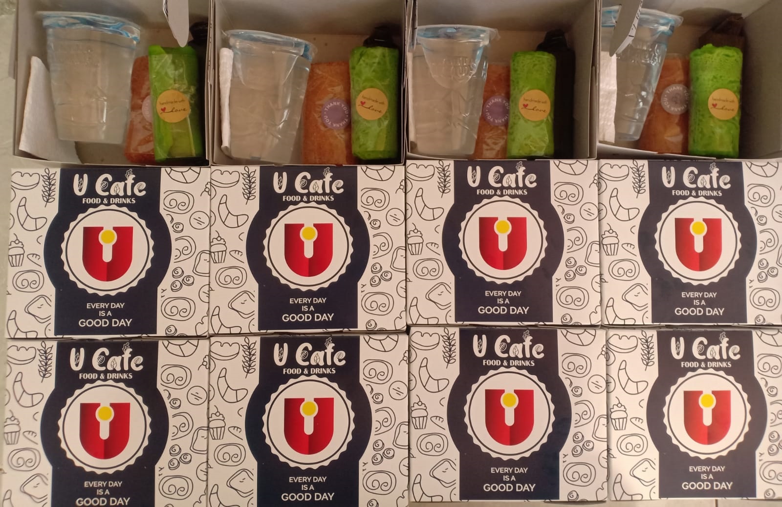 Snack box terdiri dari beberapa jenis macam kue, yg disusun ke dalam box karton, biasanya selalu di dampingi dengan air minum dan tisue